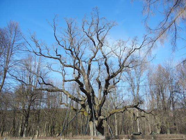 Na nocleg wybraliśmy sobie las na południe od Goleniaw, tak żebyśmy rano mieli niedaleko na pociąg. Idąc w upatrzonym kierunku, przystanęliśmy na chwilę przy dębie Bartku.