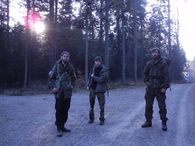 Przypadła mi przedostatnia warta, więc Rabtoszek obudził mnie chwilę przed drugą. Całkiem nieźle wypoczęty, tylko nieco zgrzany ciepłem ogniska wstałem i na bosaka zacząłem organizować sobie zaplecze opałowe. Zbierając pojedyncze badyle, przypadkowo odkryłem stary, całkowicie omszały mini stosik. Jakieś 20 wałków, z których chyba tylko rdzenie nie były zmurszałe leżało sobie smutne pośród mchów. Bez specjalnych skrupułów porwałem dwa z brzegu i położyłem ostrożnie, wzdłuż na dość pokaźnym ogniu. Po kilkunastu minutach udało mi się jeszcze znaleźć częściowo nadgniłą karpę, która po położeniu pomiędzy wałkami zapewniła mi jakieś półtorej godziny szukania optymalnego miejsca do przesiedzenia warty. Ciężko było o złoty środek, a jedyny idealne miejsce miałem już wydeptane do zimnej, wilgotnej ziemi. Po dwóch godzinach obudziłem Kubusha na zmianę, a sam poszedłem dalej kimać, tym razem kompletnie odsunięty od ogniska, za ponczem Rabtoszka.