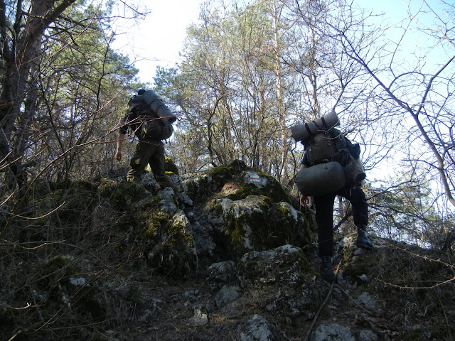 Tu czekało nas świetne podejście i jakiś zabytkowy kamieniołom. Zrobiliśmy mała przerwę na relaks kolan i udaliśmy się przebyć granią jeden z najciekawszych dla mnie odcinków czerwonego szlaku. Warto wspomnieć, że tak w ogóle ten szlak do Kielc jest bardzo urozmaicony jeżeli chodzi o teren i krajobrazy. Mało było odcinków, żebym nie miał się czym zachwycać.